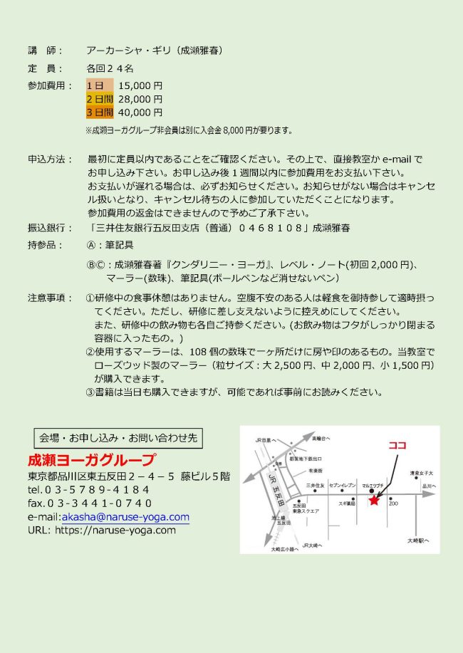 ※成瀬ヨーガグループ非会員は、入会費 8,000円が別途必要です。
