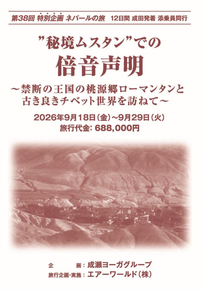 日程中、成瀬雅春先生の倍音声明や瞑想研修を数回開催いたします。