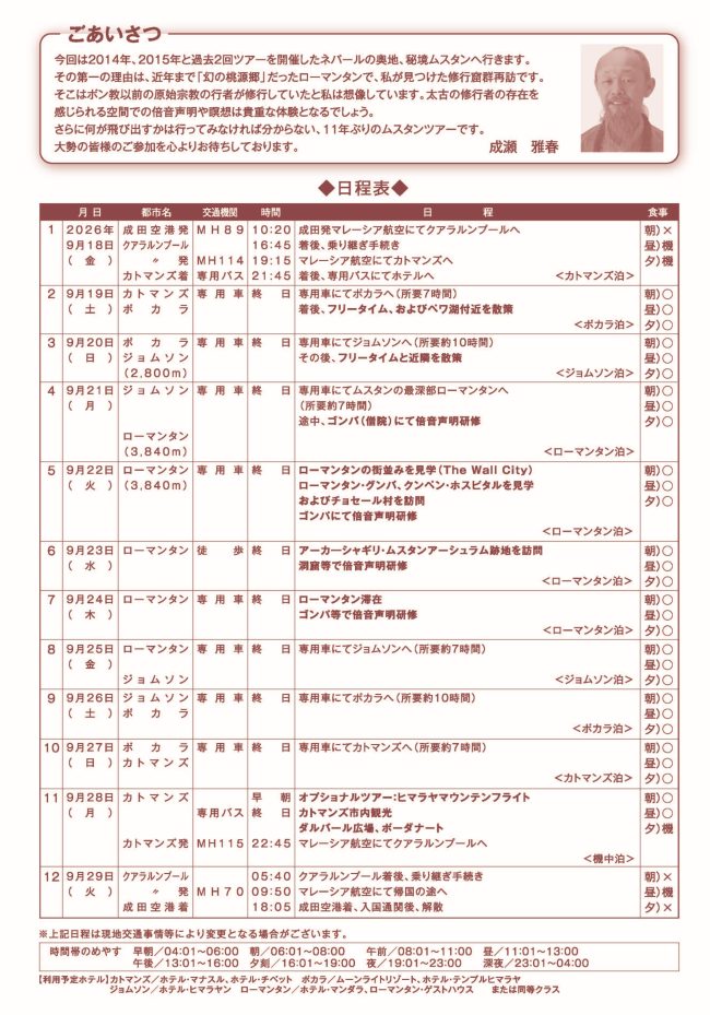 具体的な講座の実施日時はツアー中にご案内いたします。